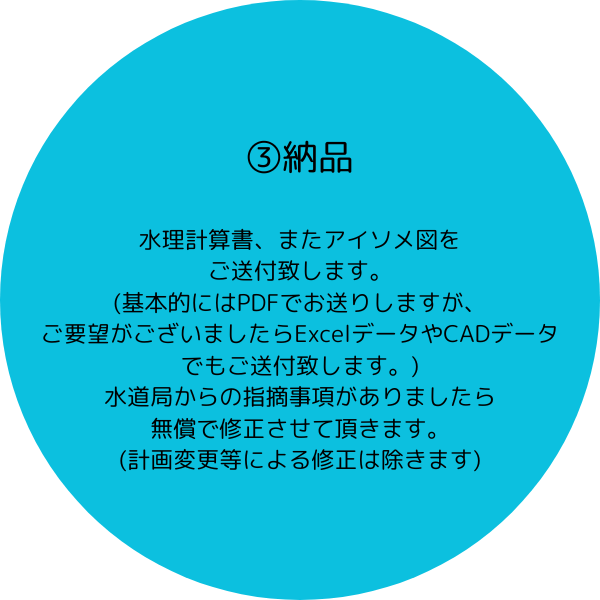 などの給水装置は、水理計算の結果を元に決定します。